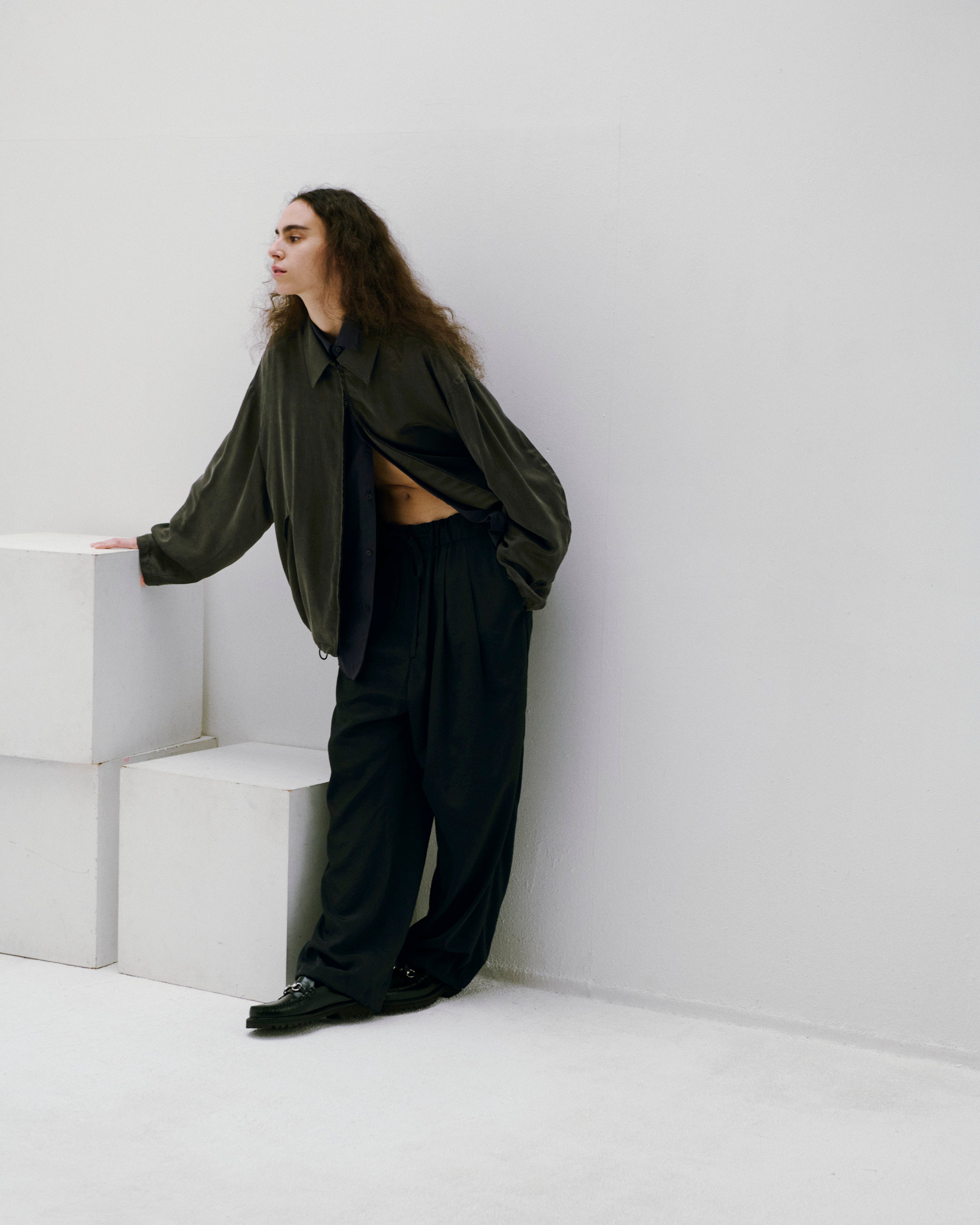 そんな山内の2026 Spring & Summer。 今シーズンの顔とも言えるシルク。 通常、シルクというとお手入れが面倒、気を遣う、などのイメージが先行しがち。 そこはやはり山内。 ご自宅で手洗い可能でございます。いちいちクリーニング出さずとも◎ あえて最高級のシルクに強制的にスレを生じさせるスエード加工を施し、さらにバイオ加工によりビンテージ風の表情に仕上げています。