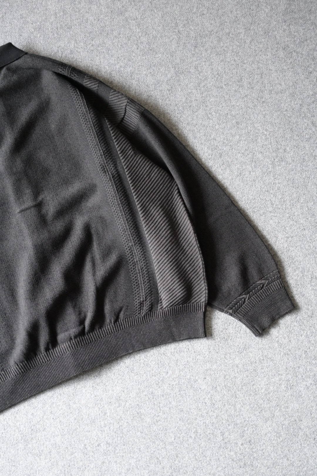 Using a technique of knitting different yarns on the front and back sides, called plating knitting, the color of the thread is changed on the front and back, and by knitting in two colors, it is finished with a deep expression.