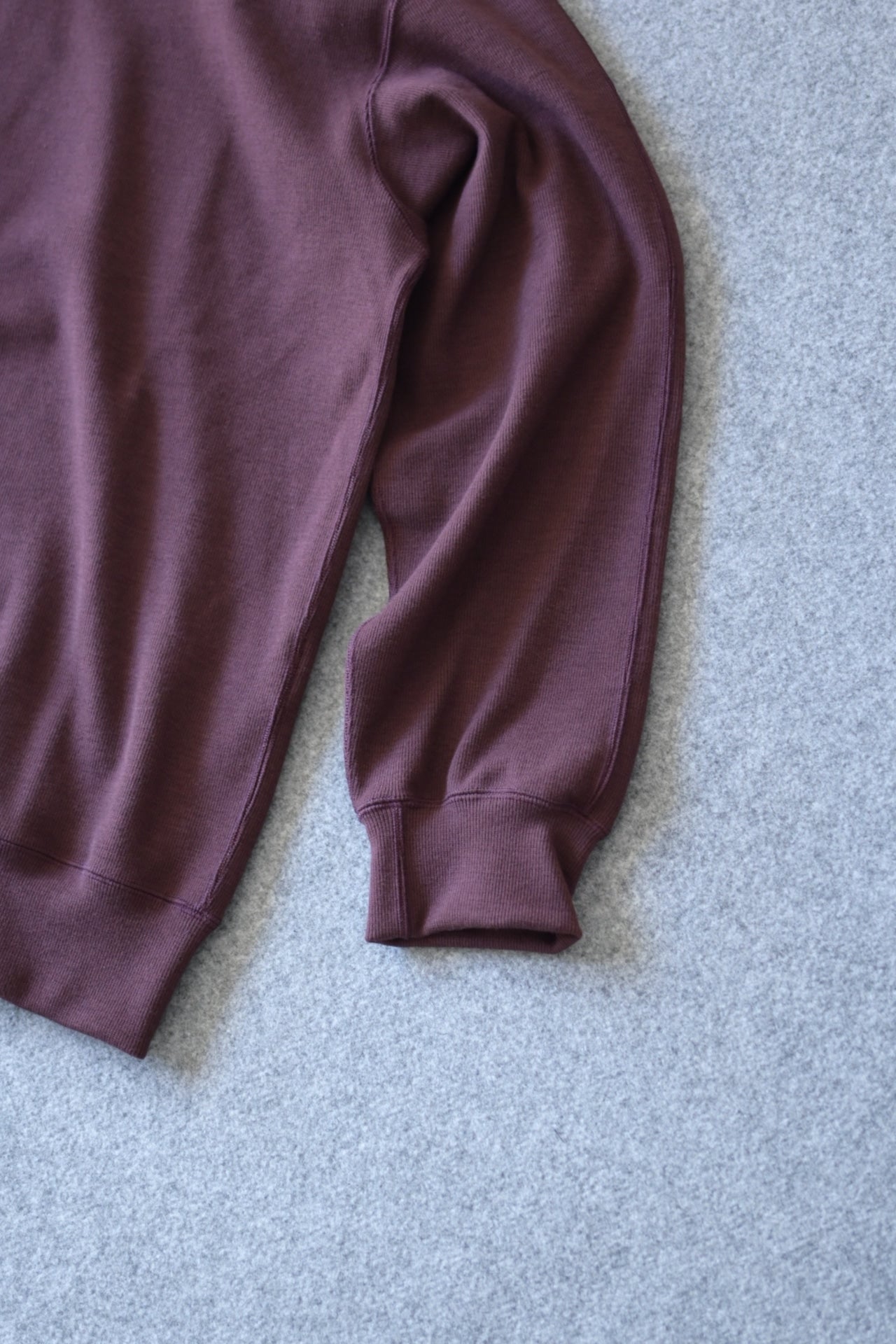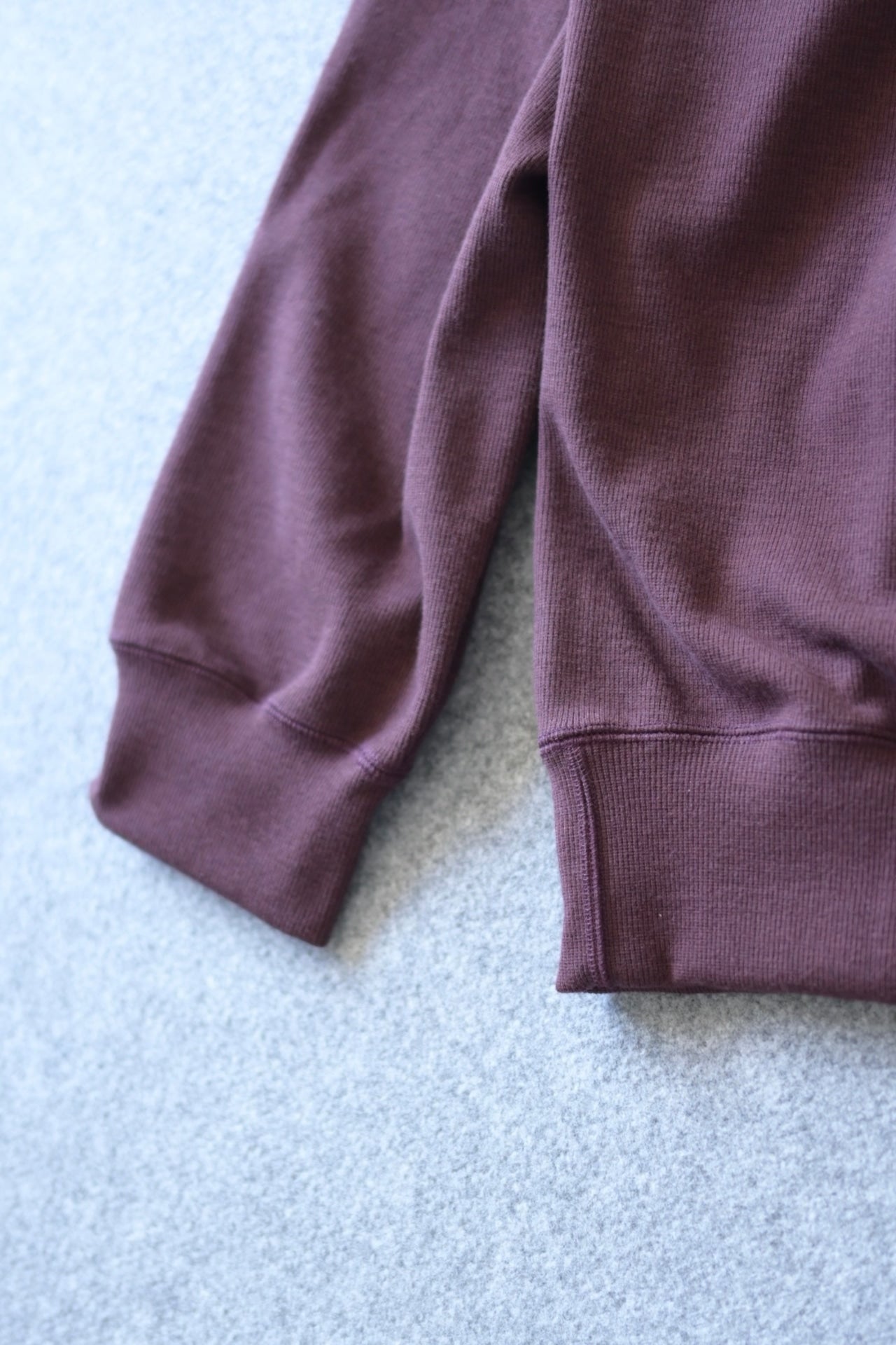 生地幅が狭く、洋服の身頃に使用するのには不向きな素材ですが、ストレスを感じさせない伸縮性はリブならでは。