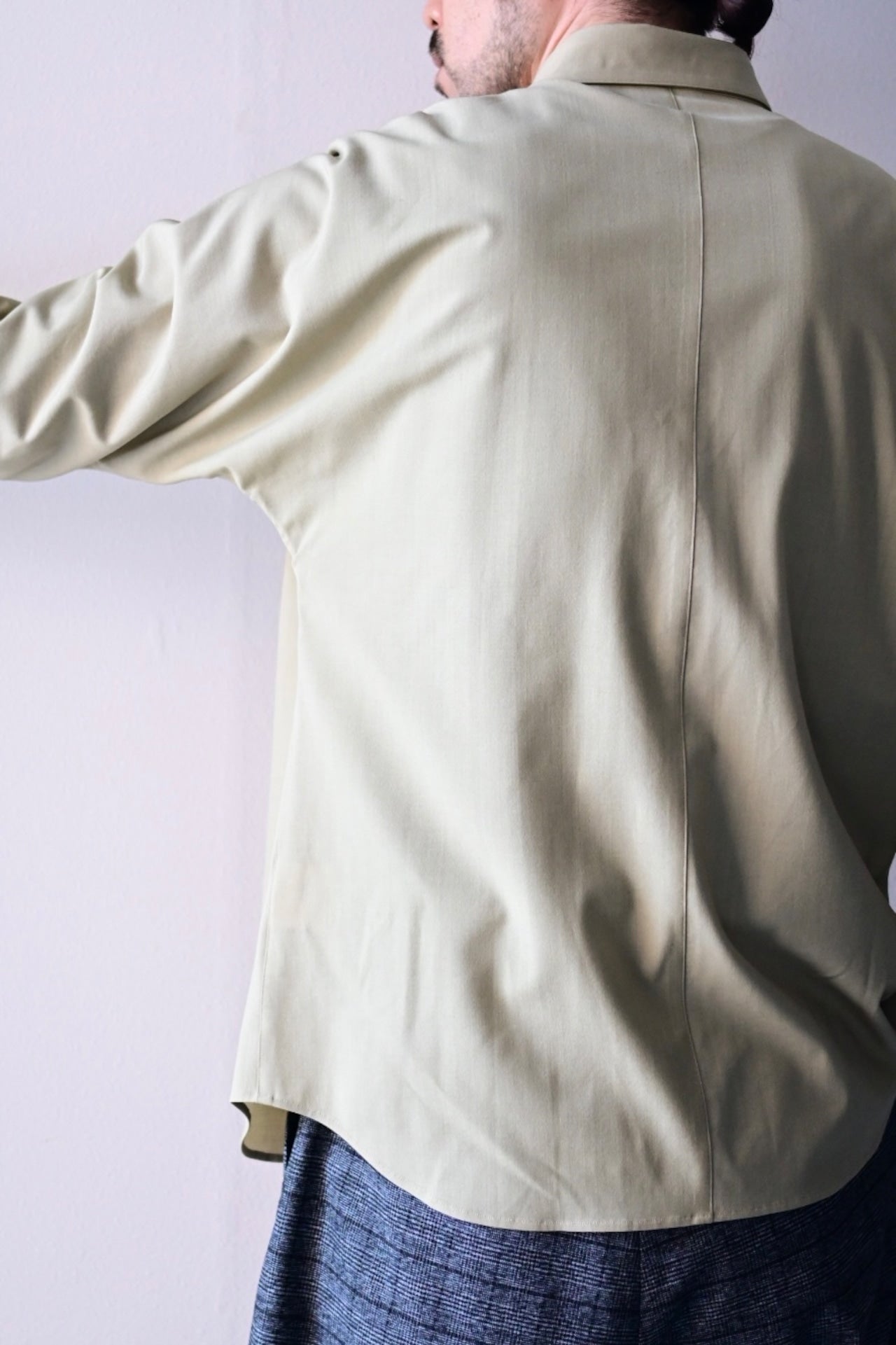 後身頃と袖がひと続きになったパターンにより、独特なシルエットが生まれ、体と洋服の間にある空気を感じ着用することのできるアイテム。