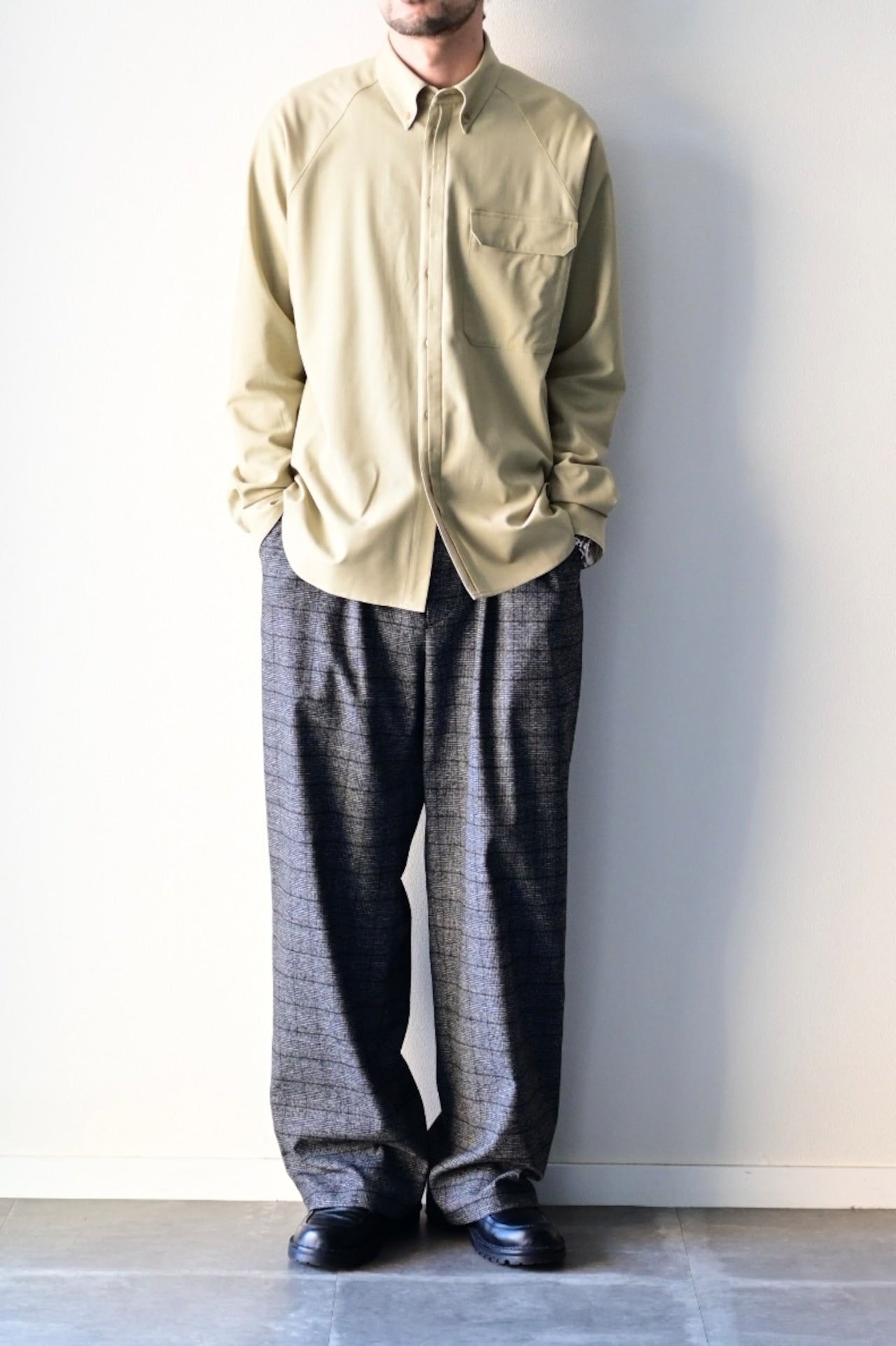 たっぷりとしたボリュームのある身幅ですが、落ち感の良いテキスタイルにより大きさを感じさせず美しいドレープを演出します。