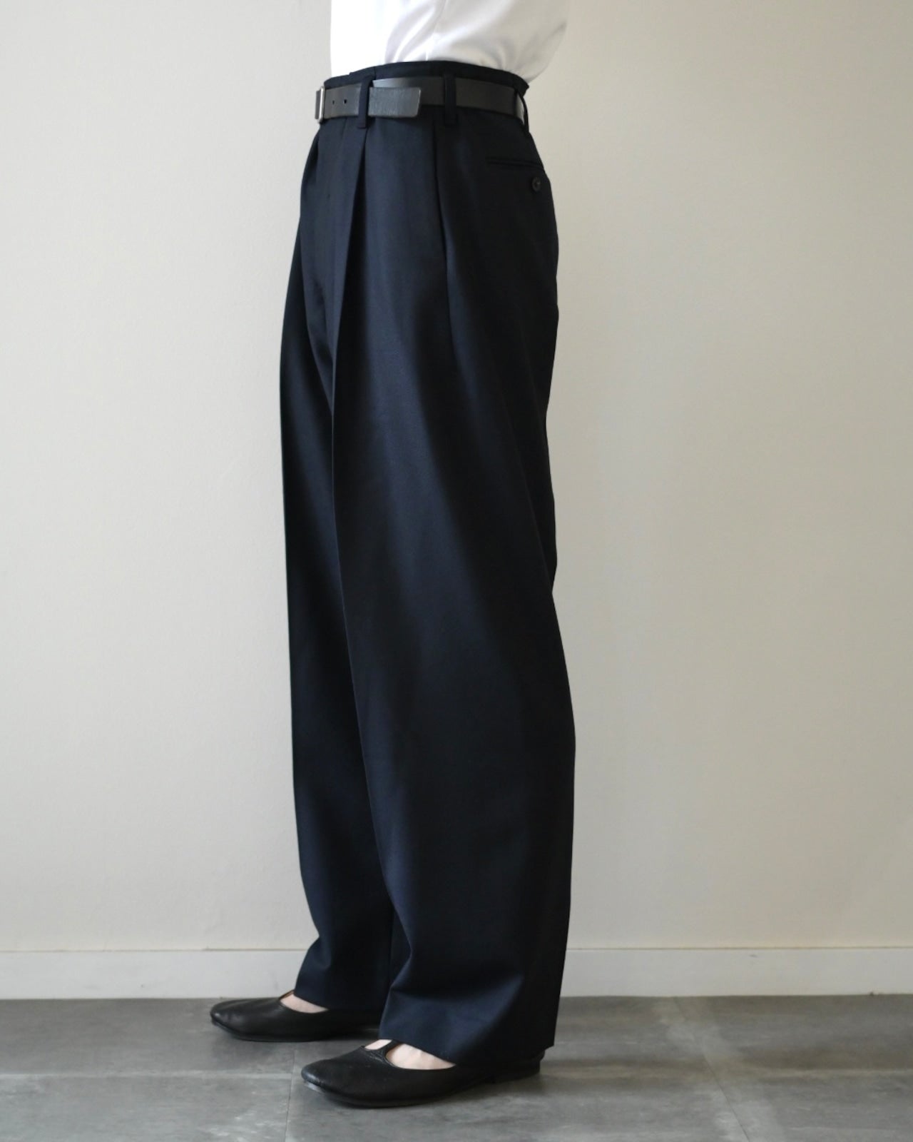 山内 - ヘビーウールツイル・サイドシームレスワンタックパンツ [dark navy]