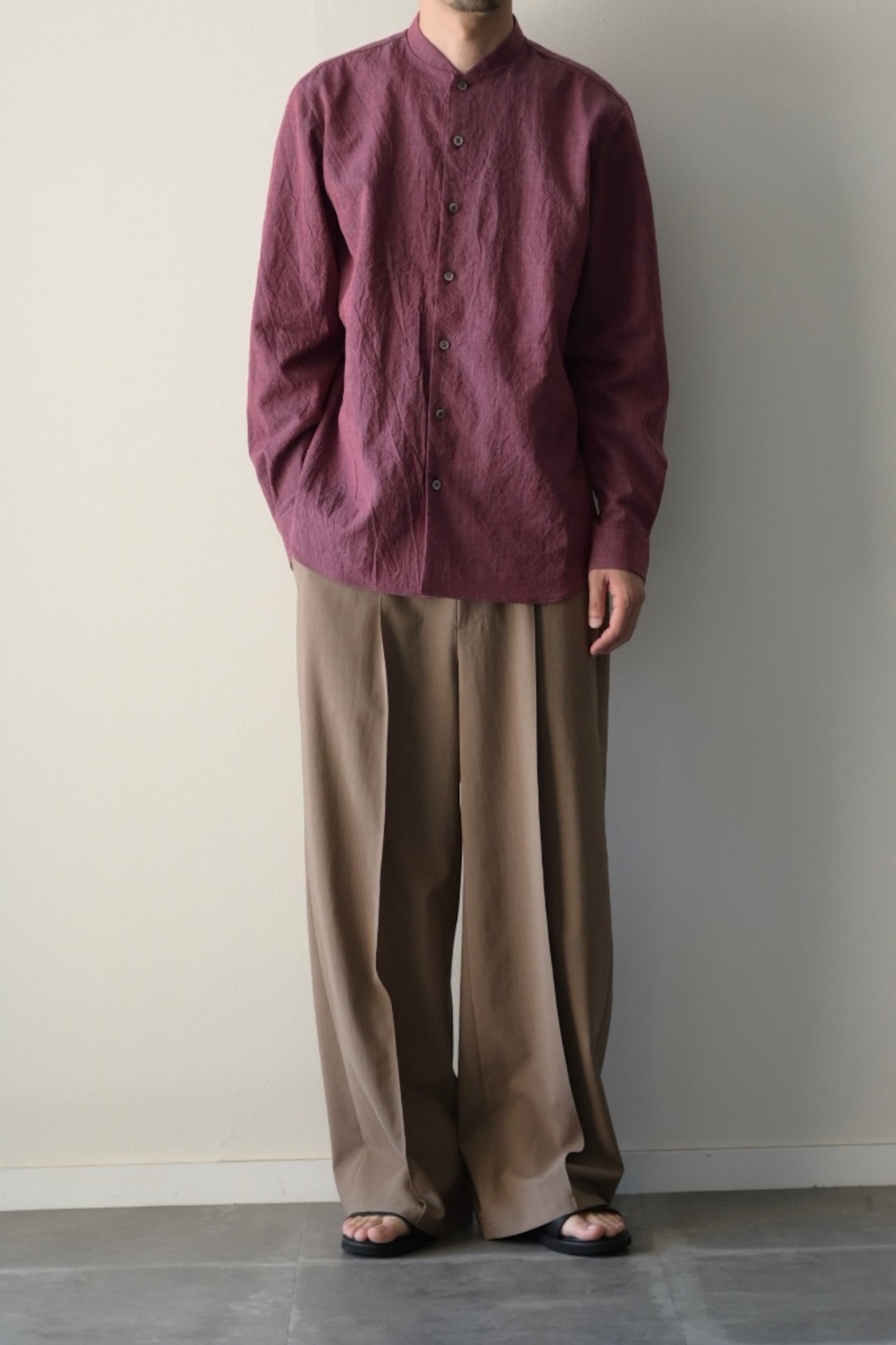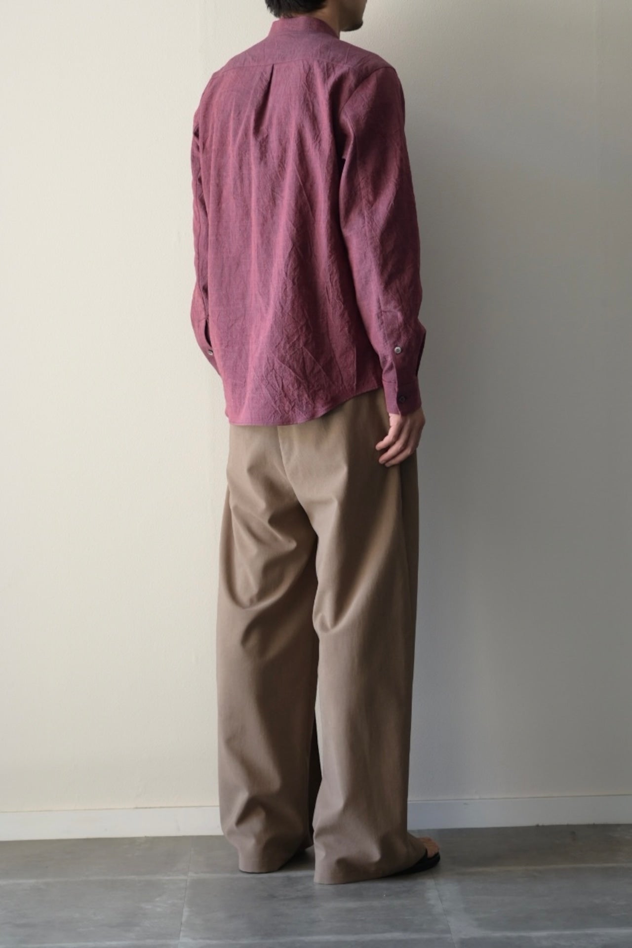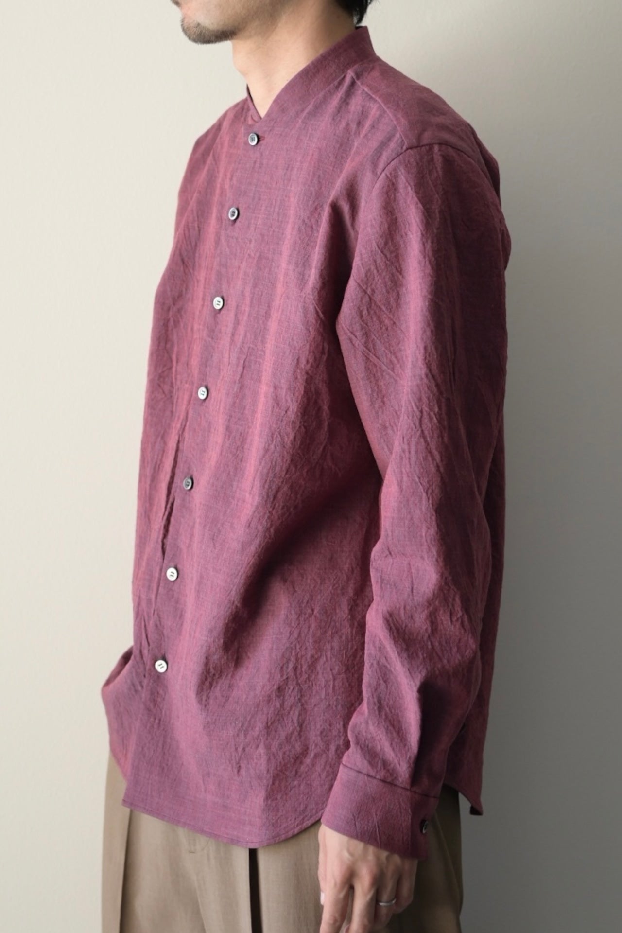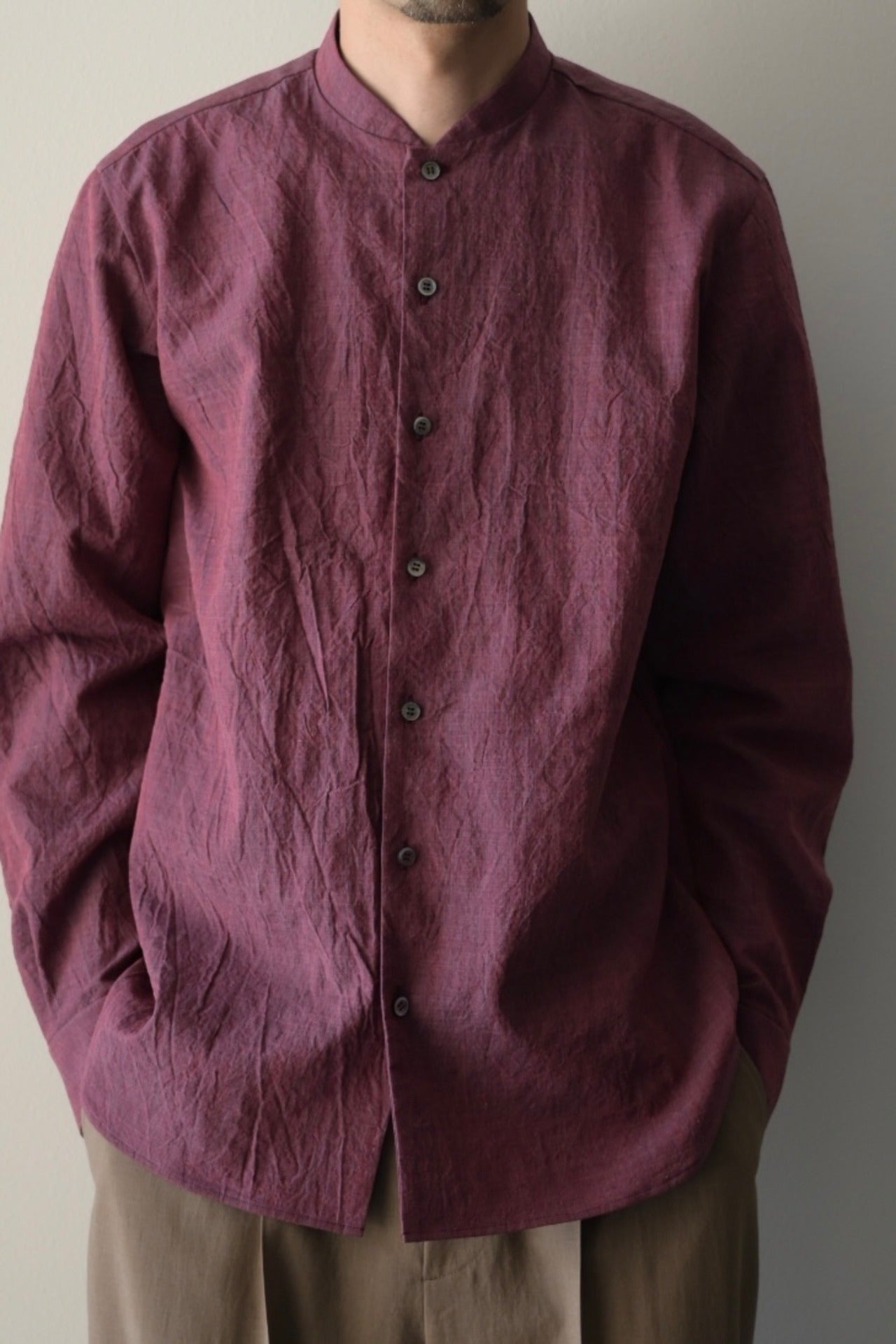 山内 - 塩縮加工ラミーシャンブレーシャツ 羽襟無し [shitan]