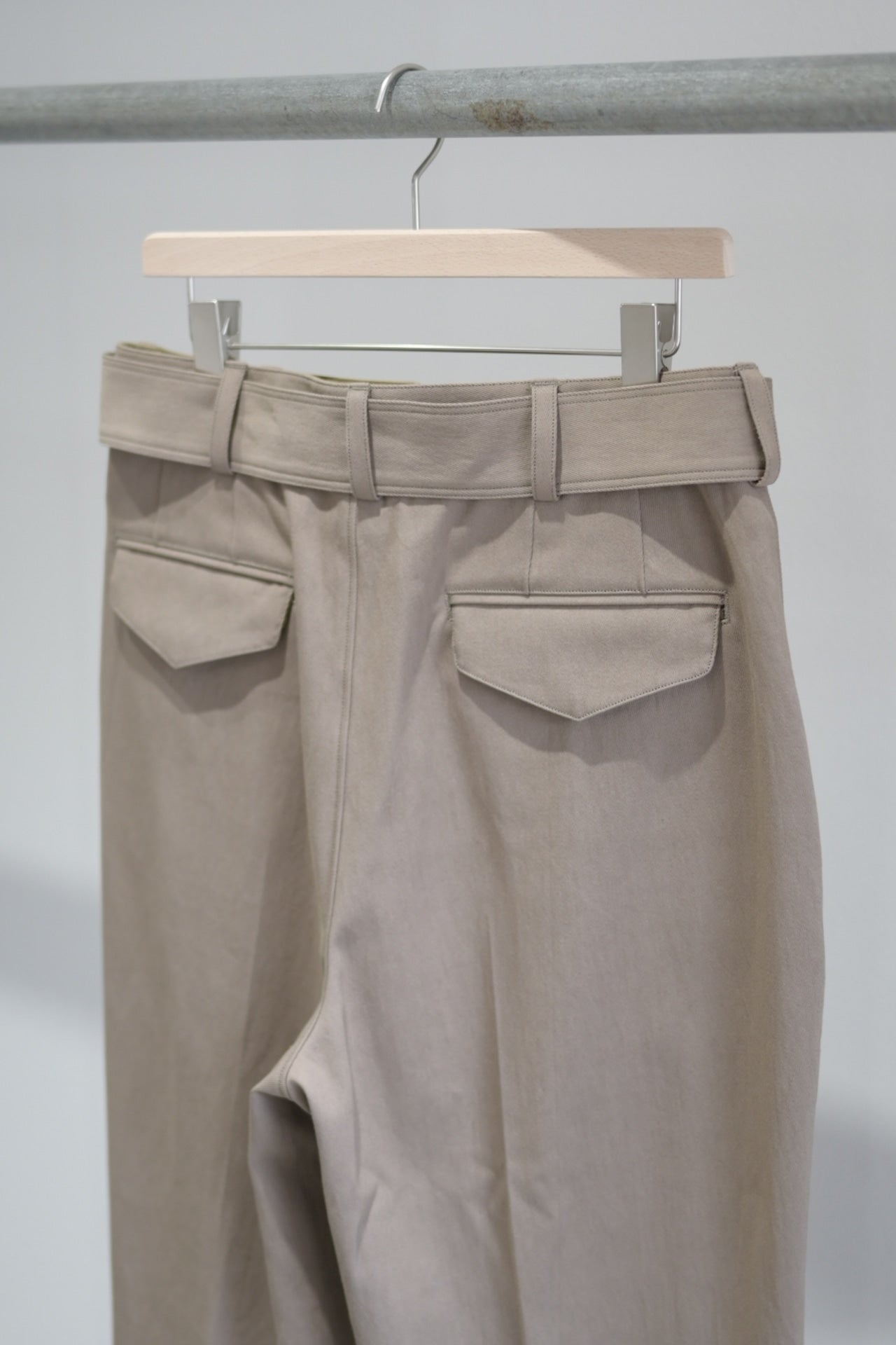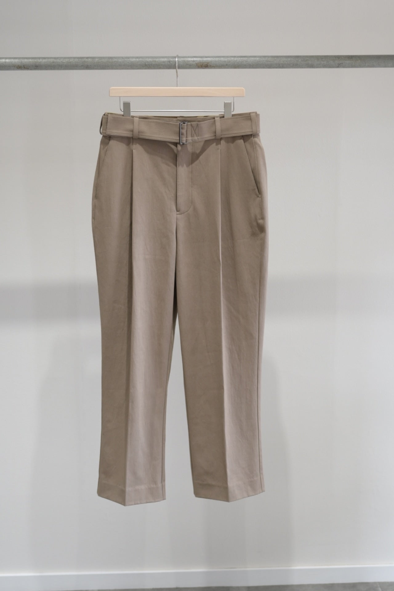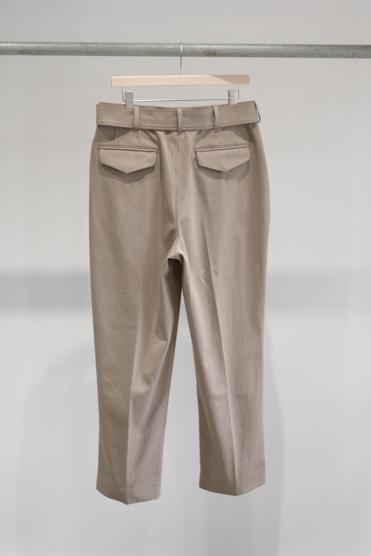 5cm幅で安⼼感のあるベルトをアクセントに仕⽴てたパンツです。