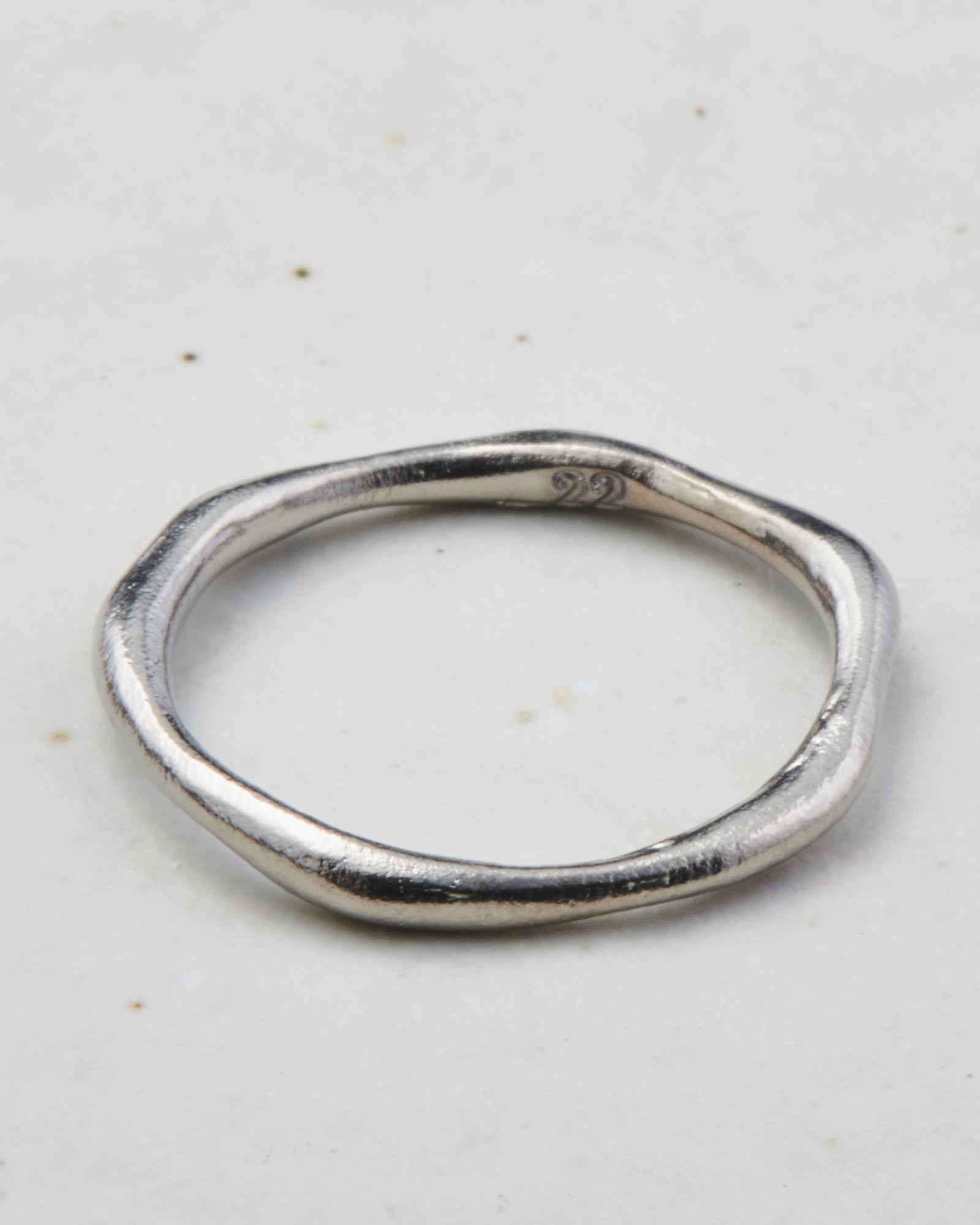 リング表面の質感はサンドブラスト加工後、若干の研磨を入れて、落ち着いた少しマットな表面ですが輝きのある雰囲気です。