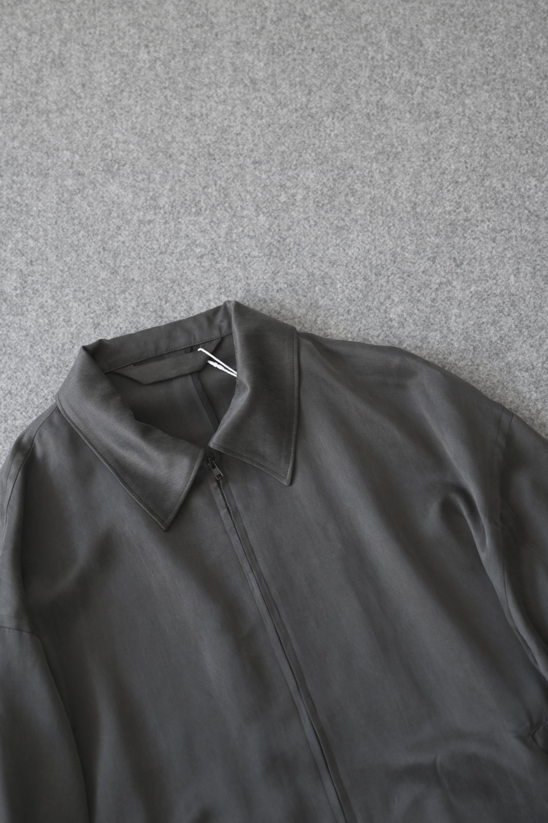 しなやかなドレープ性、滑らかな質感が特徴のキュプラの素材。その素材を鈍い光沢感とヴィンテージライクな風合いになる様、繊維の表面に摩擦を与え、毛羽立たせるフィブリル加工を施し、独特な色味に仕上がっています。