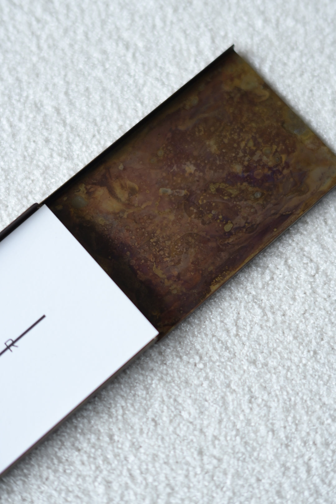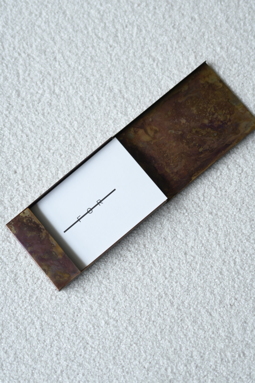 真鍮に富山県高岡市の伝統技法「着色」を施し仕上げられる美しい斑紋は、ひとつとして同じ模様がなく、まさに一点物としてご愛用いただけます。