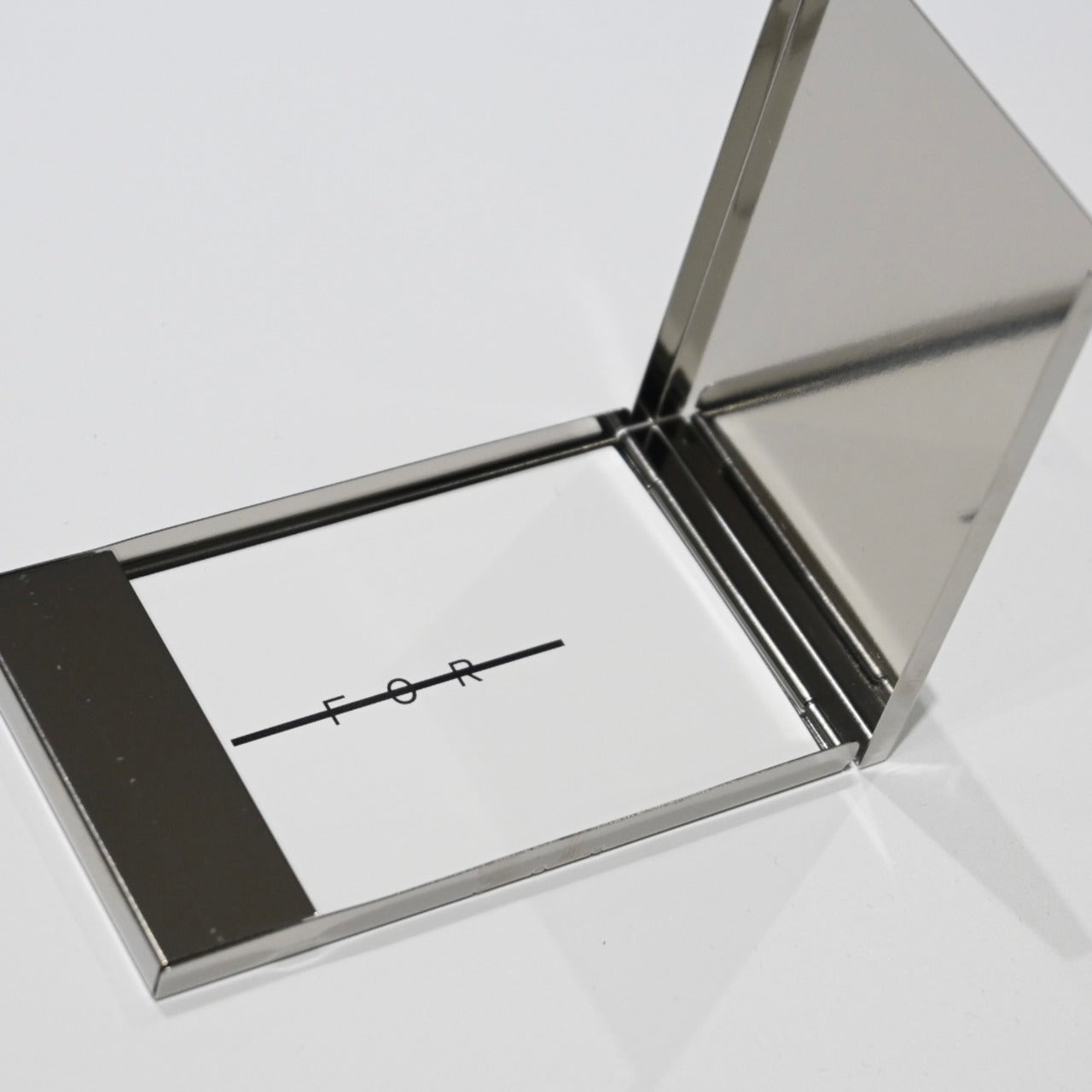 色はミラーのような輝きのあるシルバーで、表面はツルッとしています。