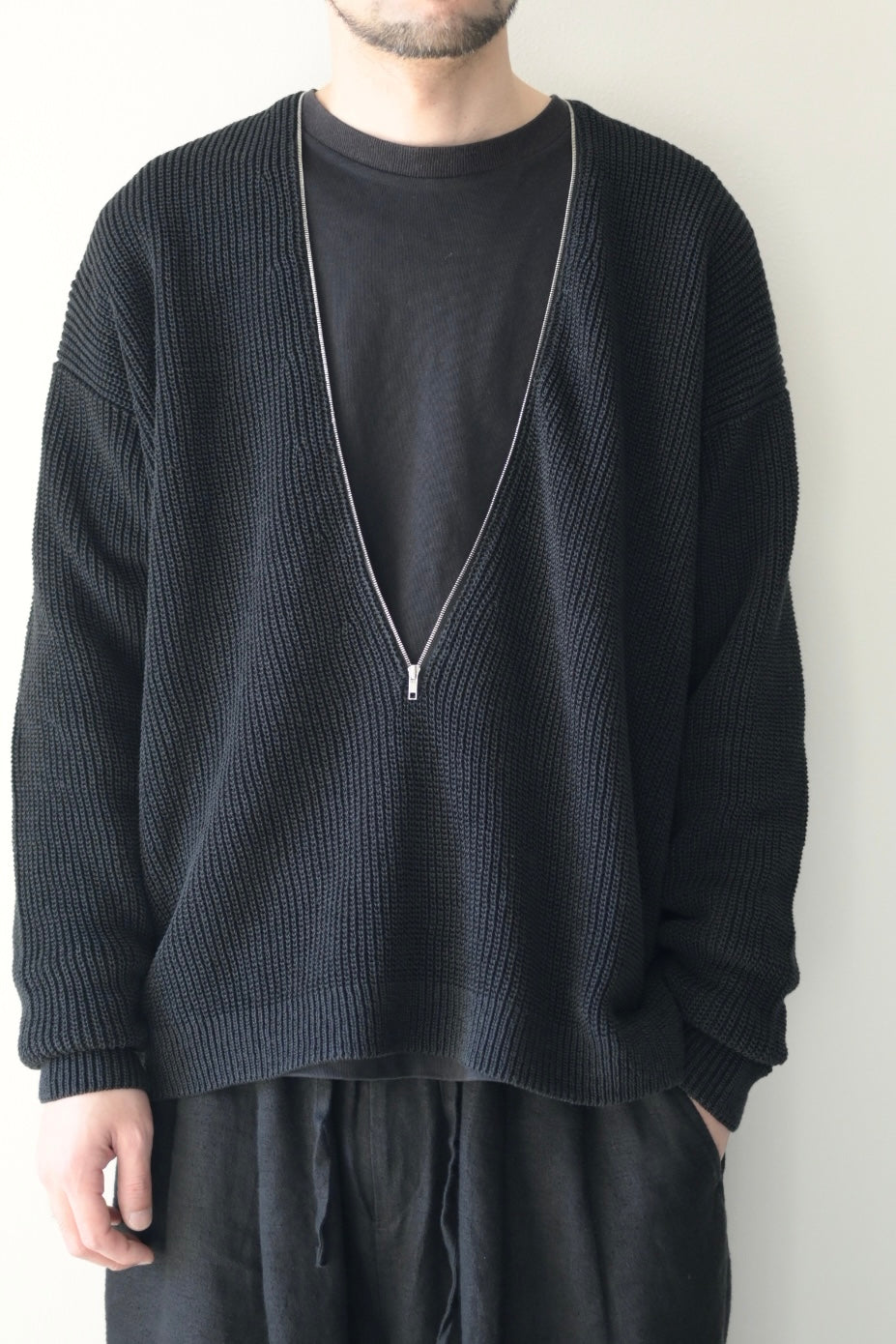 phebus - HEMP KNIT ZIP-UP JUMPER [BLACK]