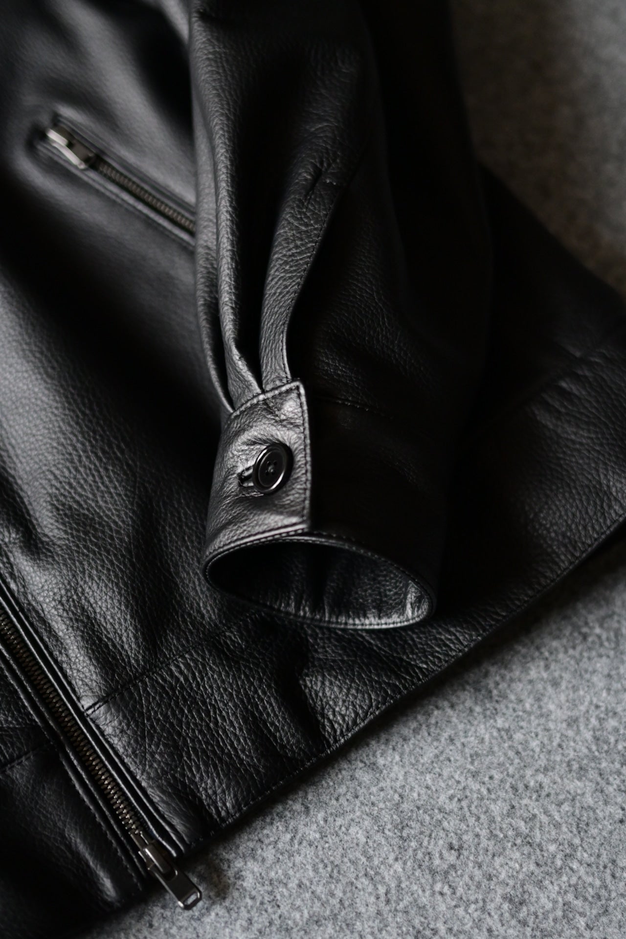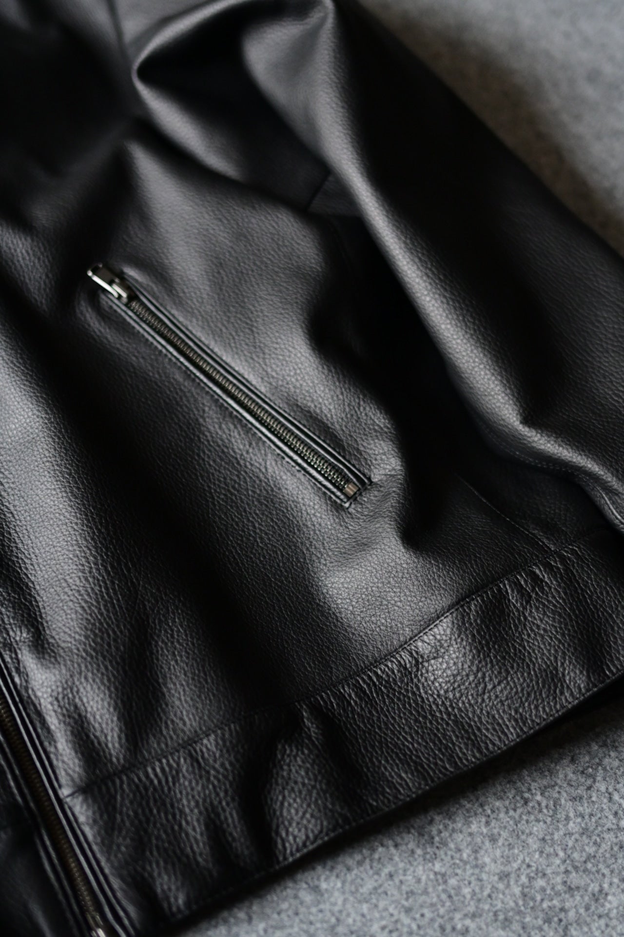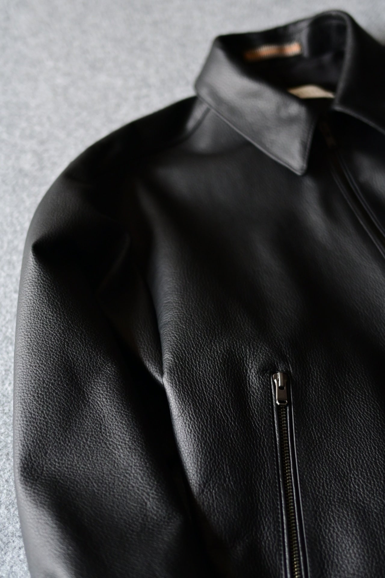 食肉用途の鹿児島県黒毛和牛の革を副産物として衣料用に循環させたレザー。