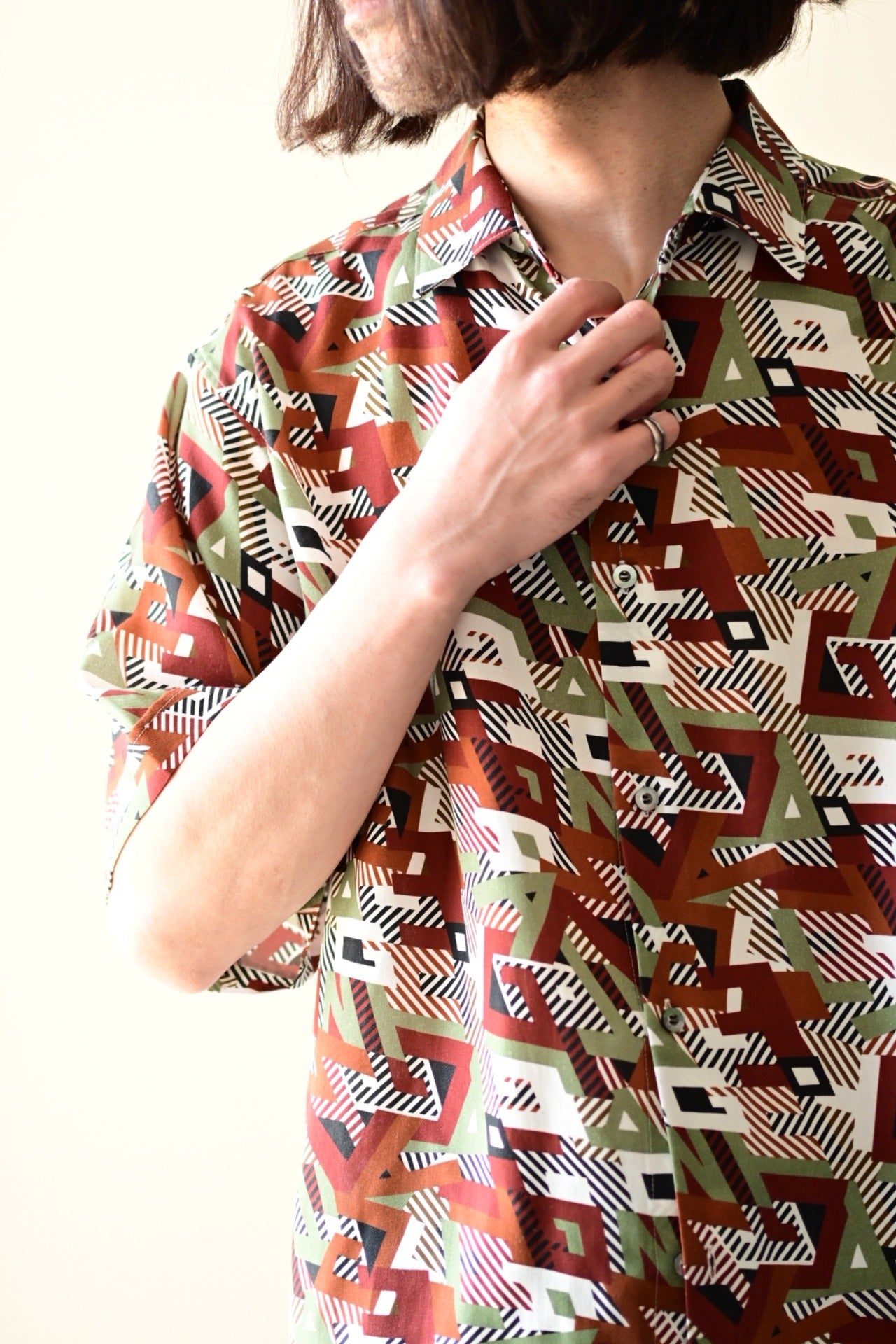 適度なフォルムを感じさせるレギュラー半袖シャツ。