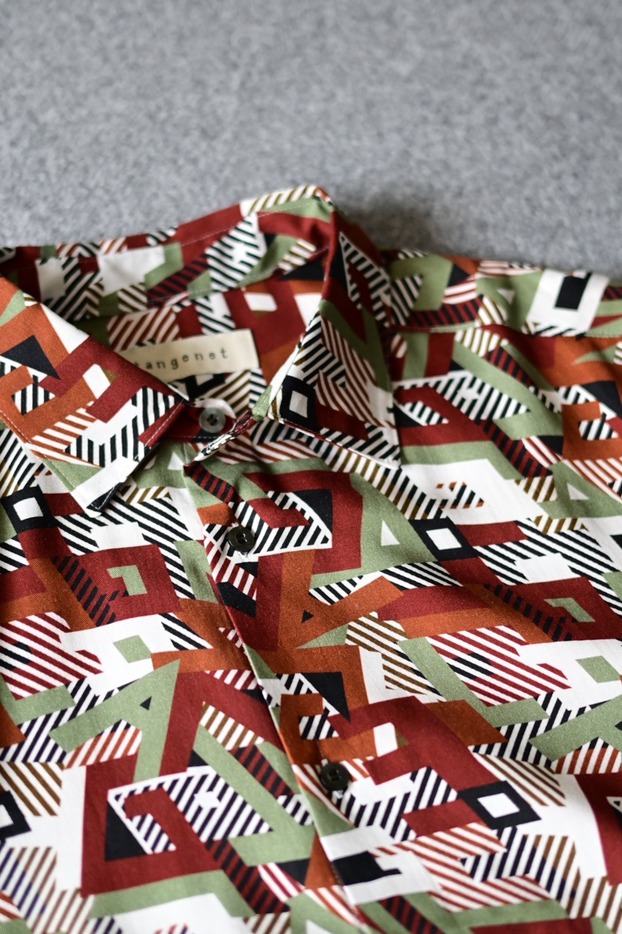 ジオメトリック柄の中にtangenetのアルファベットを散りばめたデザイン。