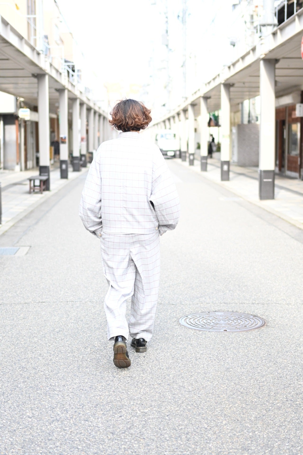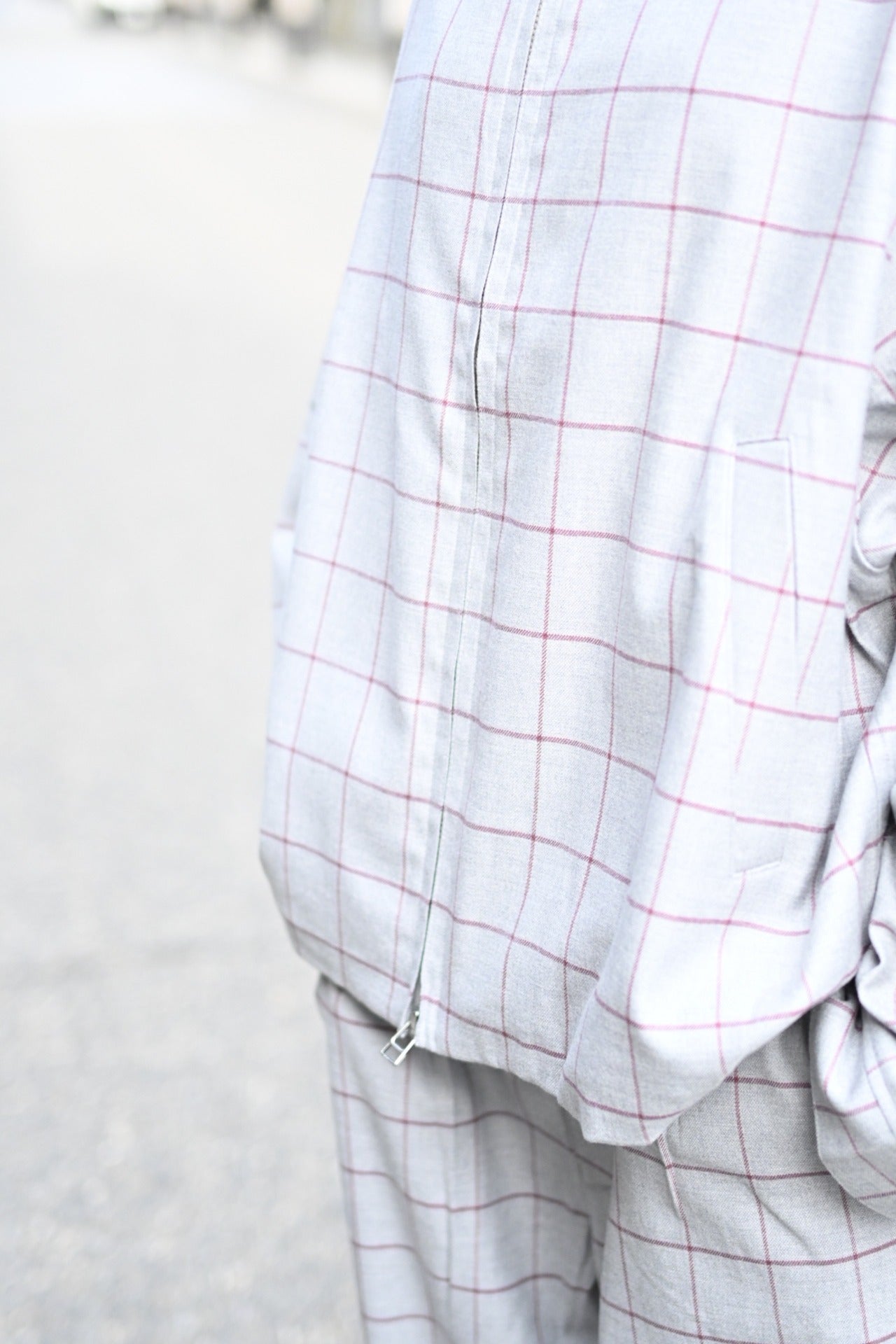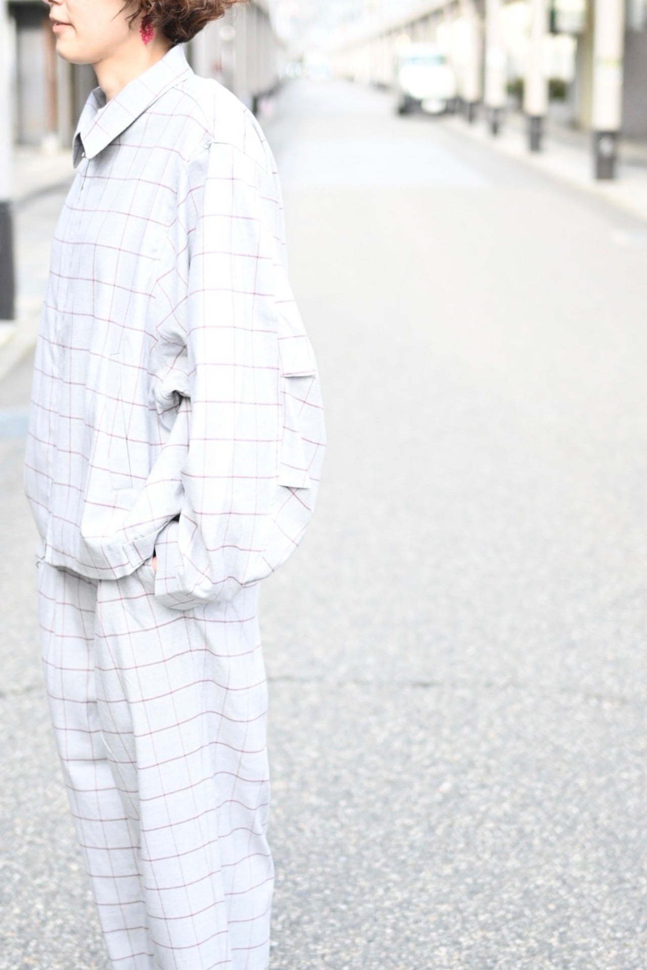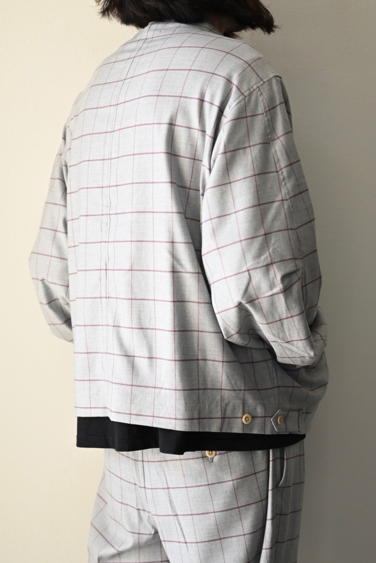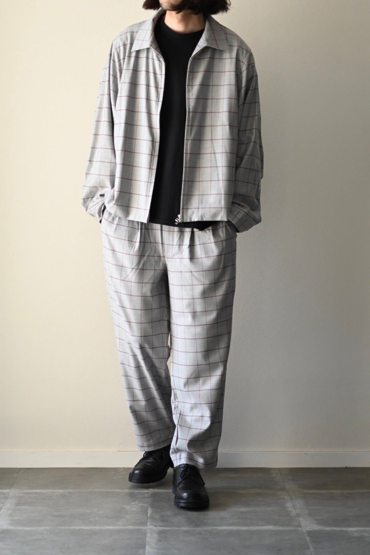Two Tuck Check Pantsとセットアップでも着用できます。