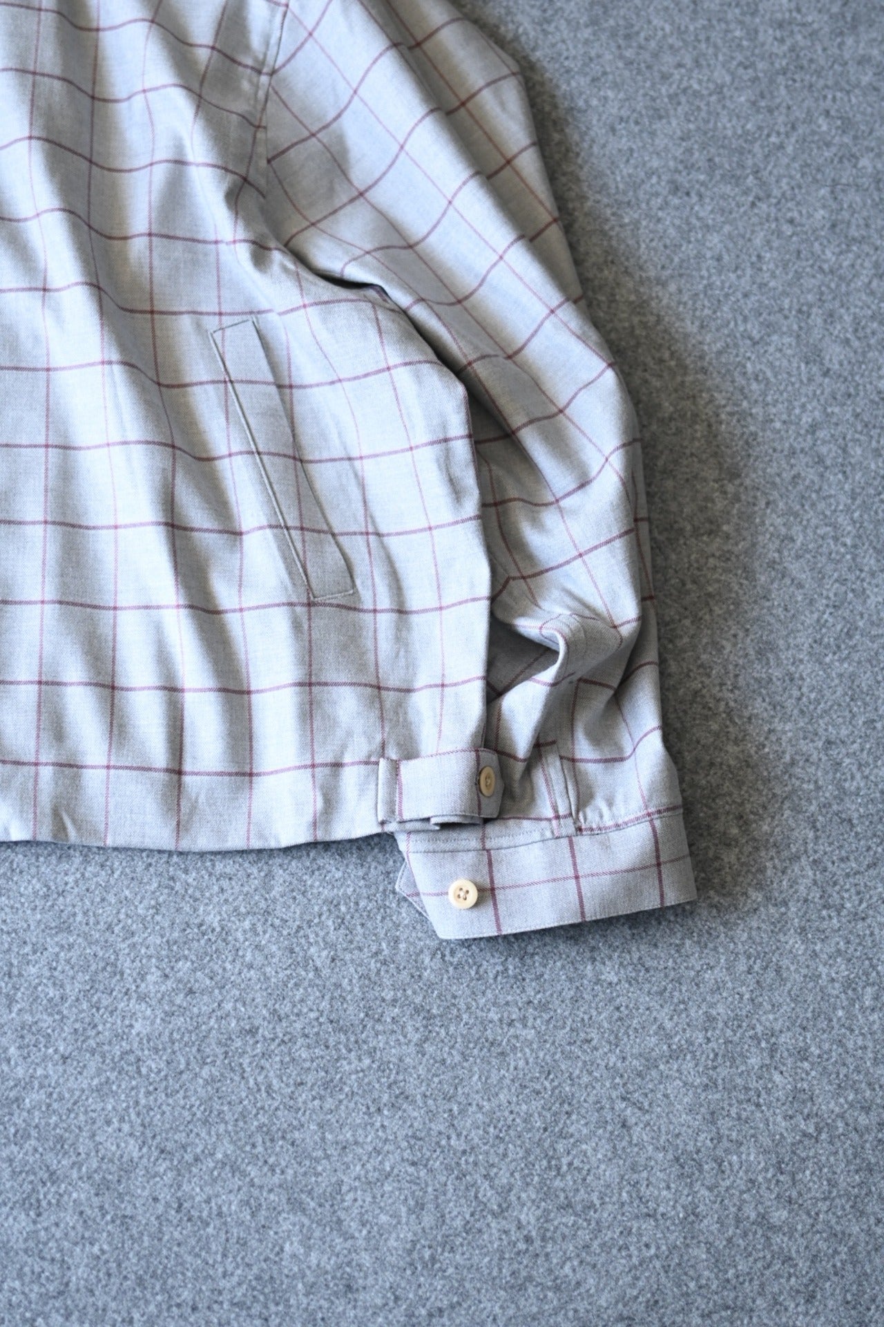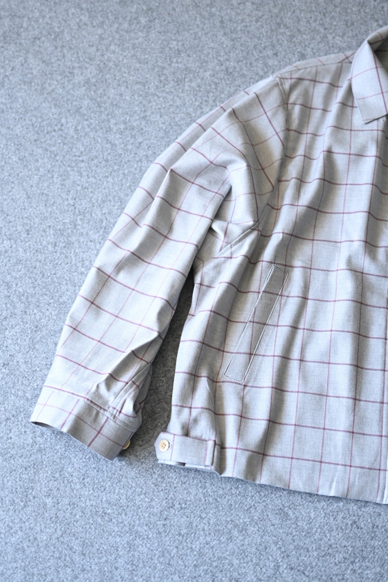 素材はデッドストックのウィンドウペンチェックを採用。